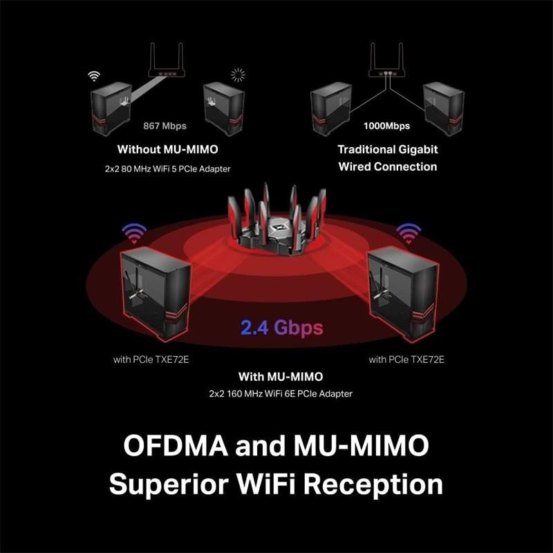 • Velocidad tribanda inigualable : aumente sus velocidades generales hasta 2402 Mbps (6 GHz) + 2402 Mbps (5 GHz) + 574 Mbps ( 2,4 GHz)