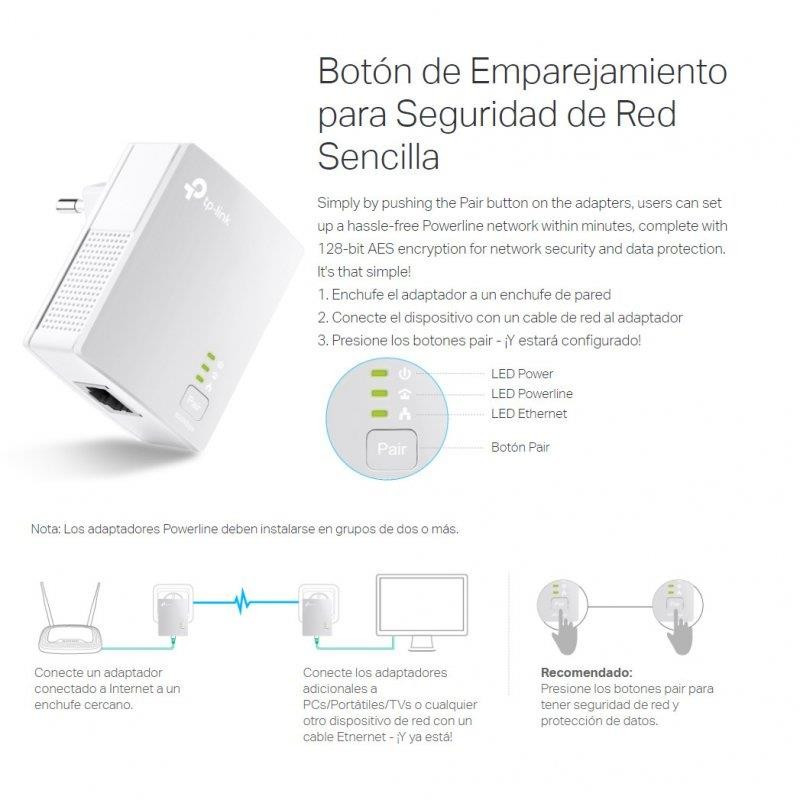 • Adaptador AV600 Powerline 2 × TL-PA4010