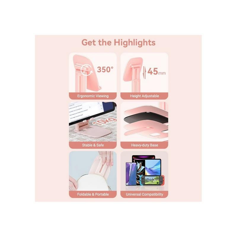 Diseño ergonómico: Permite una visualización de 350 grados, facilitando el ajuste del dispositivo en múltiples ángulos para una experiencia cómoda.?Ajuste de altura: Su estructura permite modificar la altura del dispositivo, adaptándose a diferentes necesidades y posturas.?