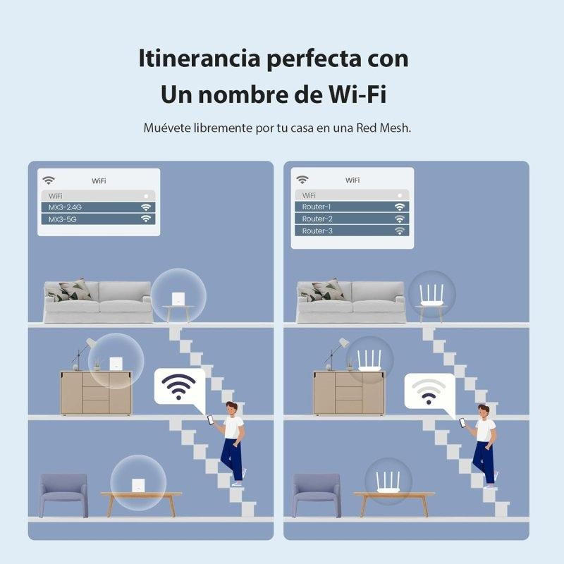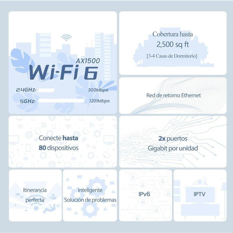 El Nova EX3 es un sistema Wi-Fi en malla diseñado para proporcionar Wi-Fi 6 en todo el hogar para casas medianas y grandes. Compatible con la tecnología easymesh, el EX3 está equipado con módulos de mejora de alto rendimiento para una penetración poderosa y una cobertura más amplia. Puede cubrir fácilmente hasta 300 m² (3500 pies²) con 3 nodos. EX3 admite la tecnología OFDMA y MU-MIMO para que se puedan conectar varios dispositivos simultáneamente sin reducir el rendimiento. Es fácil de configurar en 3 pasos, puedes disfrutar de una red inalámbrica rápida en cualquier momento.