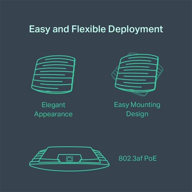 El EAP115 es ideal para entornos domésticos o de oficina. Wi-Fi rápido: Wi-Fi de hasta 300Mbps con 2 × 2 MIMO.