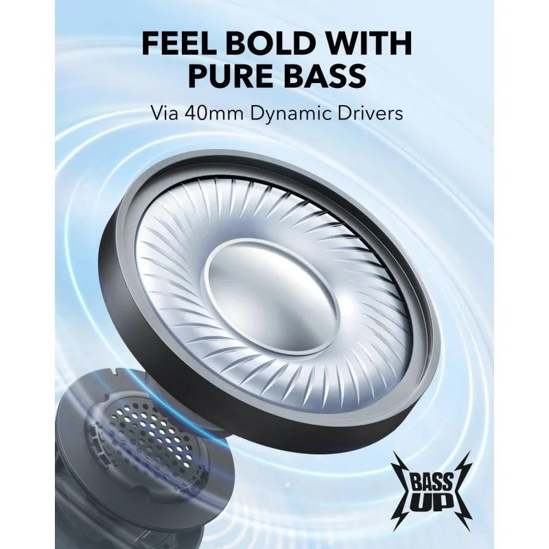 - Graves puros con sus drivers dinámicos de 40 mm: La característica más destacada de los H30i de Soundcore son sus dinámicos de 40 mm, gracias a estos puede ofrecer graves puros. Por otra parte, la tecnología BassUp, cuidadosamente integrada, potencia los bajos, permitiendo que cada nota resuene con claridad y contundencia.