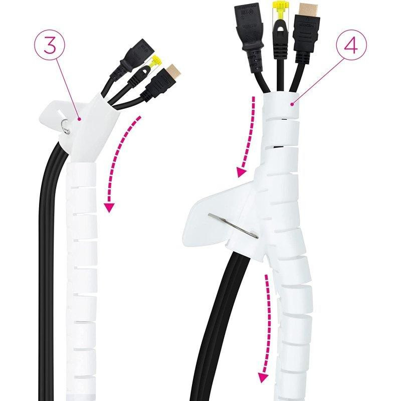 - El organizador de cables es perfecto para recoger los cables de manera práctica y sencilla en cualquier entorno. Gracias a su composición flexible y resistente de un metro de longitud y un diámetro de 25 mm; otorga una fácil y rápida instalación, dejando como resultado los cables ordenados y disimulados en su interior.