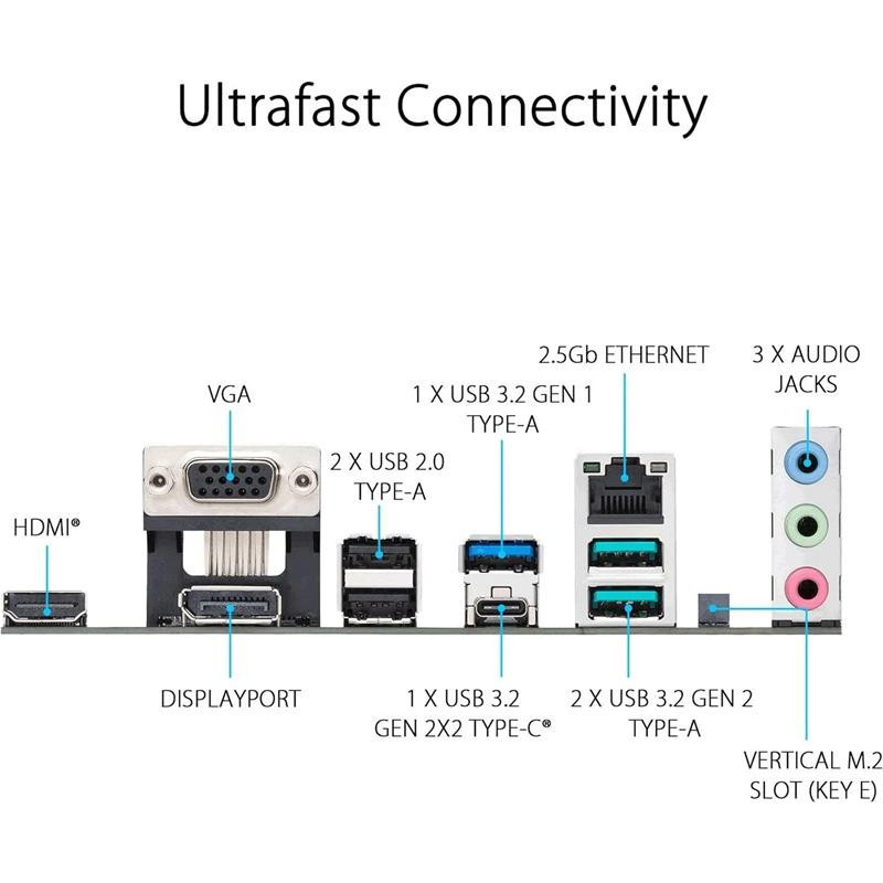 • Conectividad: LAN de 2.5 Gb, USB 3.2 Gen 2 Tipo C, USB 3.2 Gen 1 Tipo C, HDMI, DisplayPort.