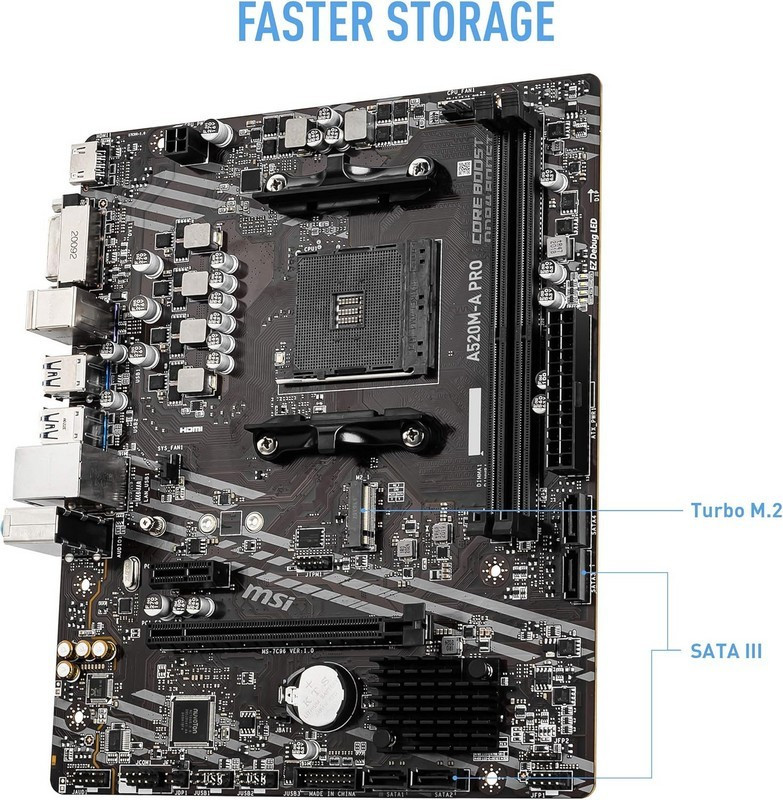 PLACA BASE MSI A520M-A PRO AMD AM4 DVI + HDMI