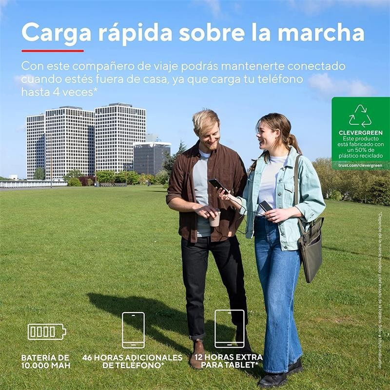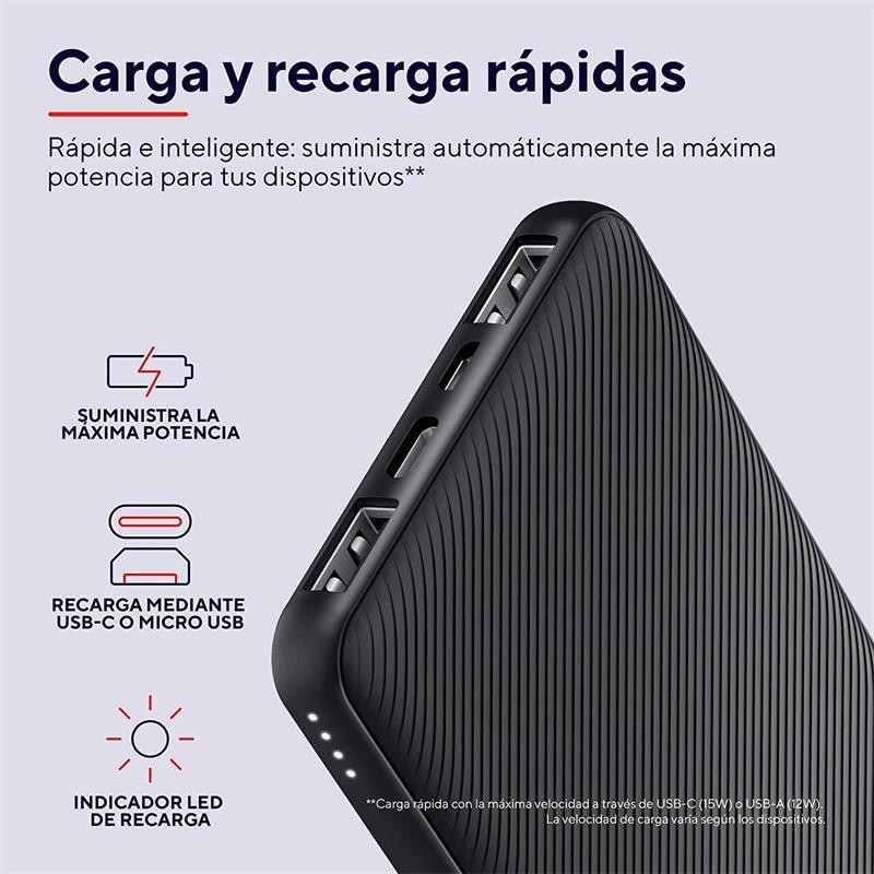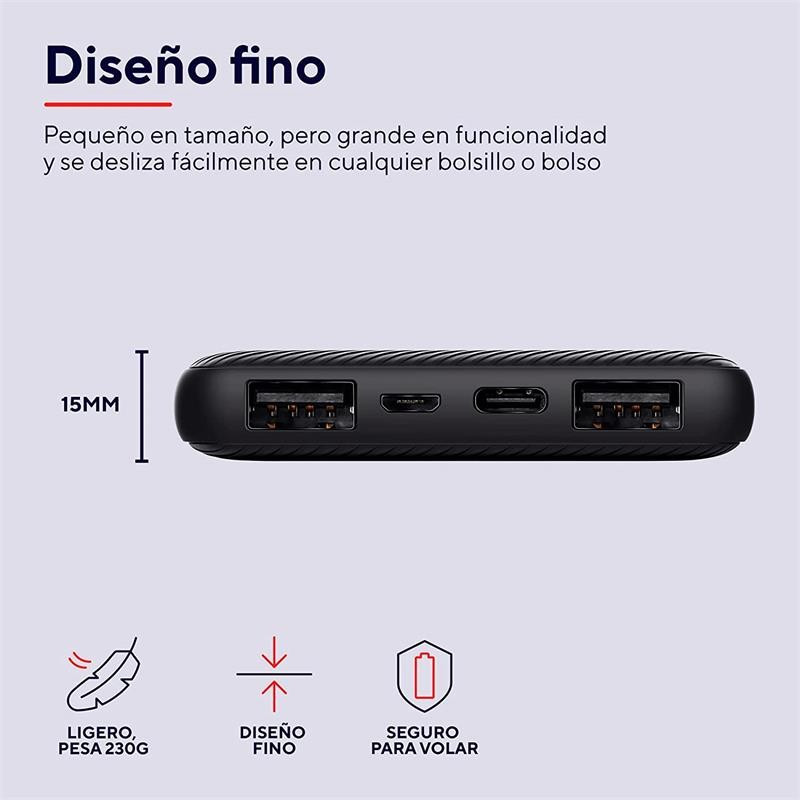 Ultra-thin powerbank for fast on-the-go charging (10.000 mAh)