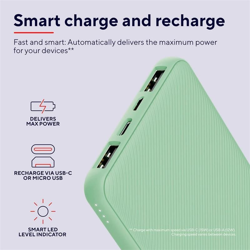 POWERBANK TRUST PRIMO SLIM 10000MAH X2 USB-A + USB-C + MICRO-USB ECO GREEN