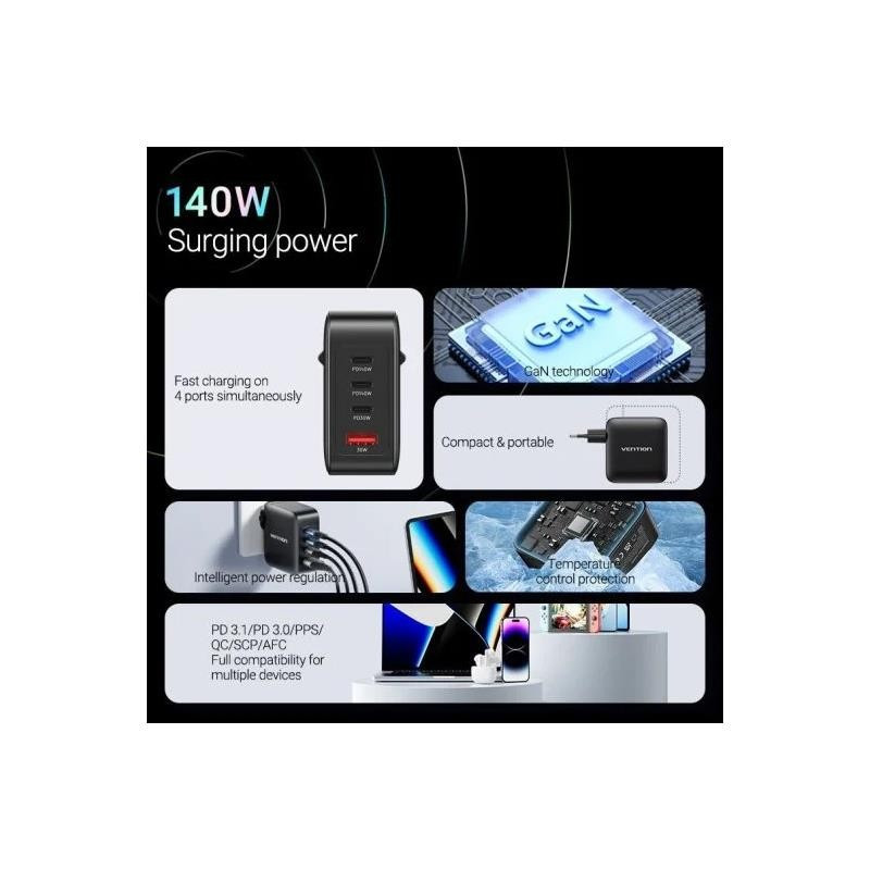 CARGADOR DE PARED VENTION GAN USB-C 20W BLACK