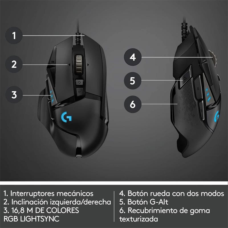 • Tecnología LIGHTSYNC: La tecnología Logitech G LIGHTSYNC proporciona iluminación RGB totalmente personalizable que también se sincroniza con tus juegos