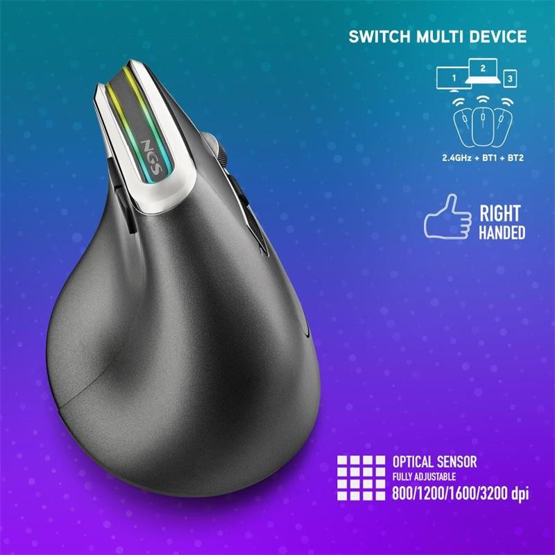 RATÓN RECARGABLE INALÁMBRICO VERTICAL CON LUCES LED Y CONEXIÓN MULTIMODO