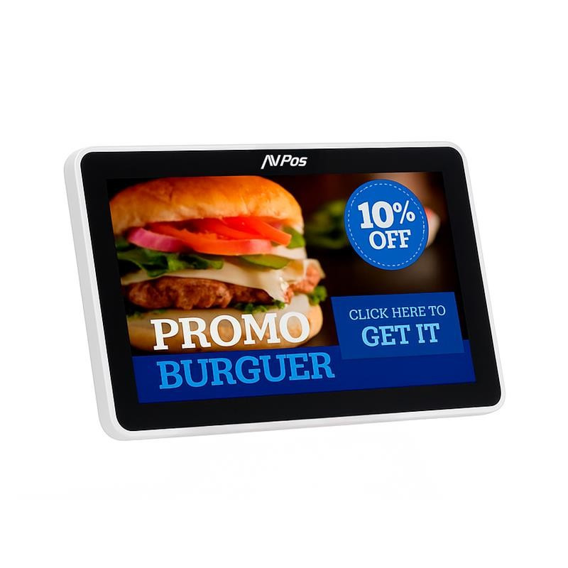 Pantalla secundaria de 7 pulgadas para el terminal AVPOS K5000 Plus, ideal para mostrar información al cliente en punto de venta.